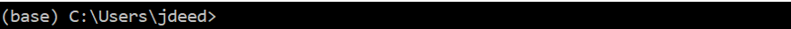 2 If using Anaconda, locate and open ‘Anaconda Prompt’. You will see something similar to the image below where (base) C:\Users\jdeed> is replaced with your username/location. Else, open ‘Command Prompt’ and launch Python by typing Python followed by Enter.